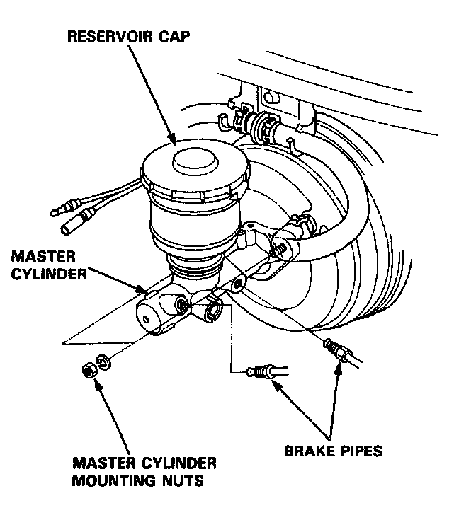 5. Remove the master cylinder mounting nuts and the master cylinder from the brake booster.