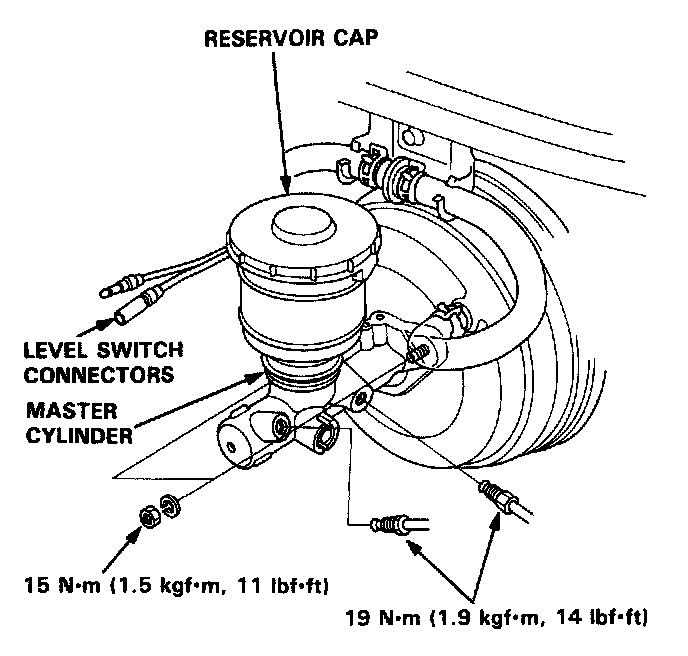 NOTE: If replacing the master cylinder or brake booster, check and adjust the pushrod clearance before installing the master cylinder. Adjustments