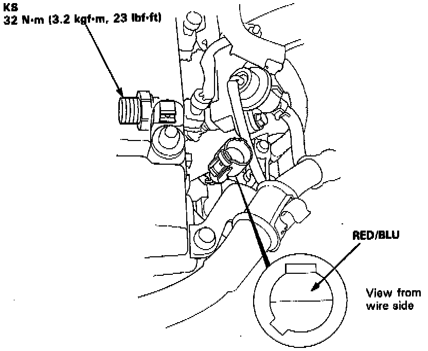 1. Disconnect 1-wire (RED/BLU) connector from Knock Sensor.