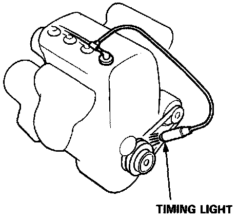 3. Connect a timing light to the engine; while the engine idles, point the light toward the pointer on the timing belt cover.