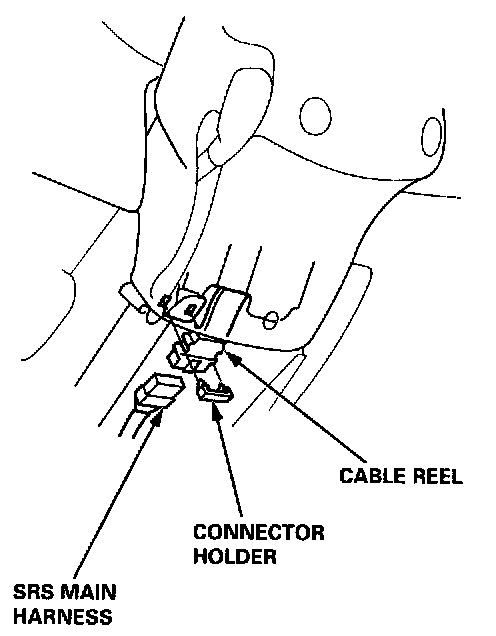 - Before removing the steering column, first disconnect the connector between the cable reel and the SRS main harness.