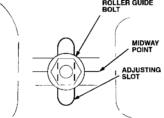 8. Move the adjustable roller guide bolt to a point midway between the top and the bottom of the slot. Temporarily tighten the bolt; then, check the operation of the glass.