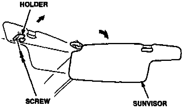 2. Swing both sunvisors toward the doors, then remove the sunvisor holders. Each holder is secured by a single screw.