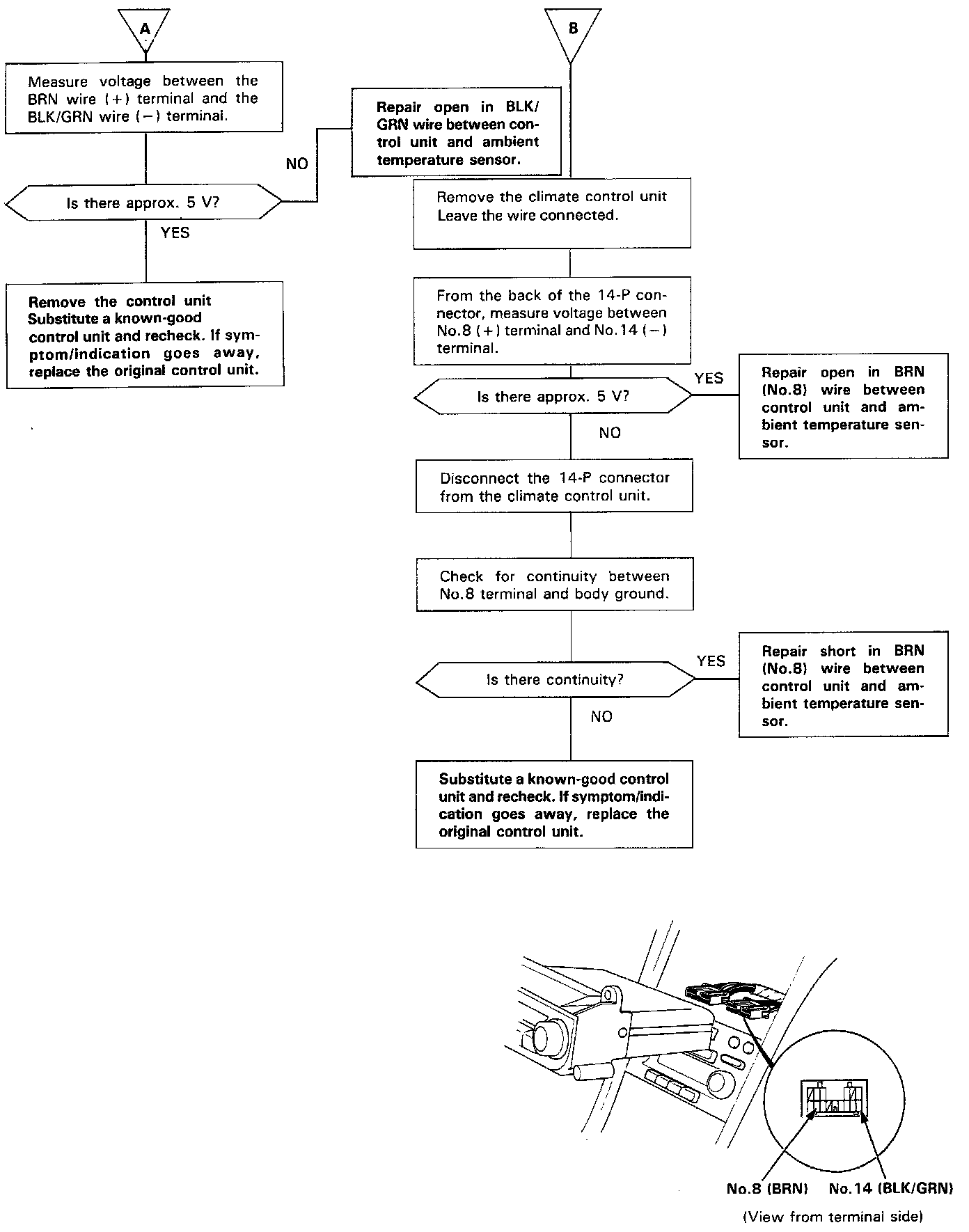Ambient Temperature SensorSelf-diagnosis indicator light B comes on: Indicates a problem in the ambient temperature sensor circuit. Use a digital multimeter (KS-AHM-32-003) to check it.