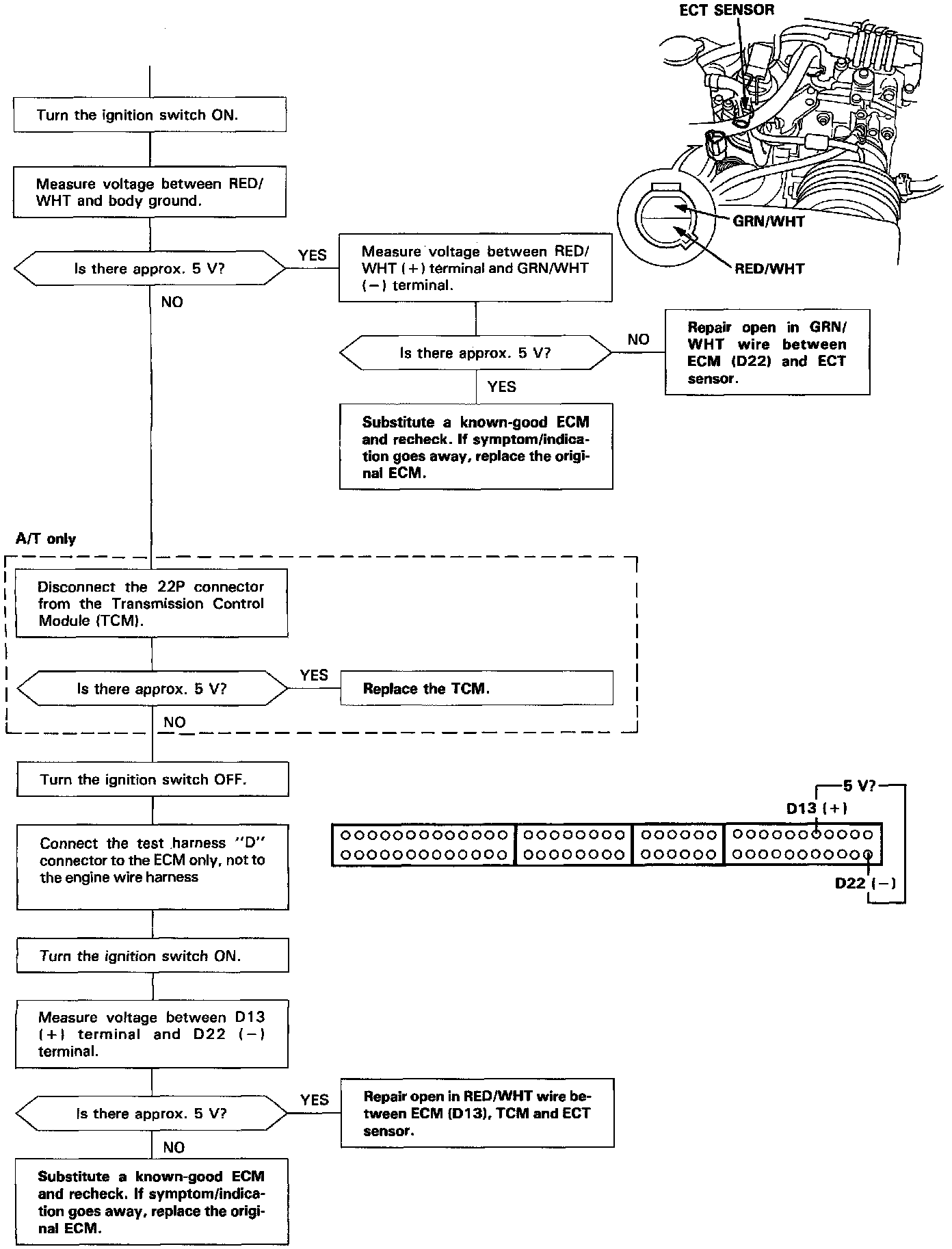 Coolant Temperature Sensor/Switch (For Computer): Testing and Inspection