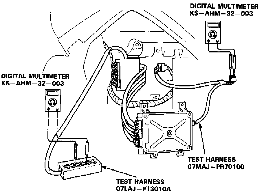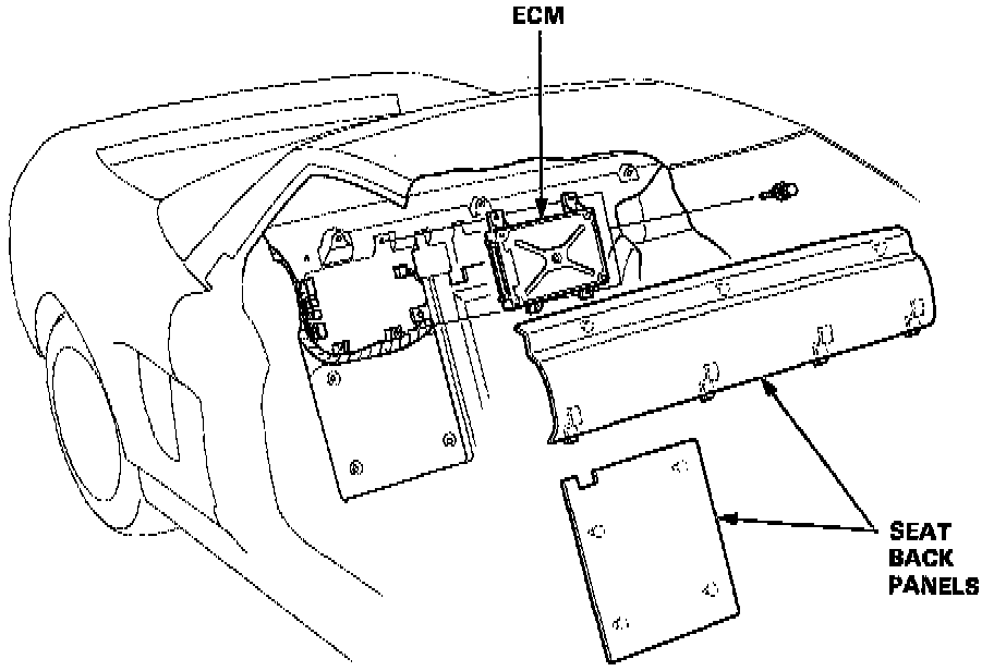 If the inspection for a particular code requires the test harness, remove the seat back panels. Unbolt the ECM. Connect the test harness. Then check the system according to the procedure described for the appropriate code(so) listed on the following pages.