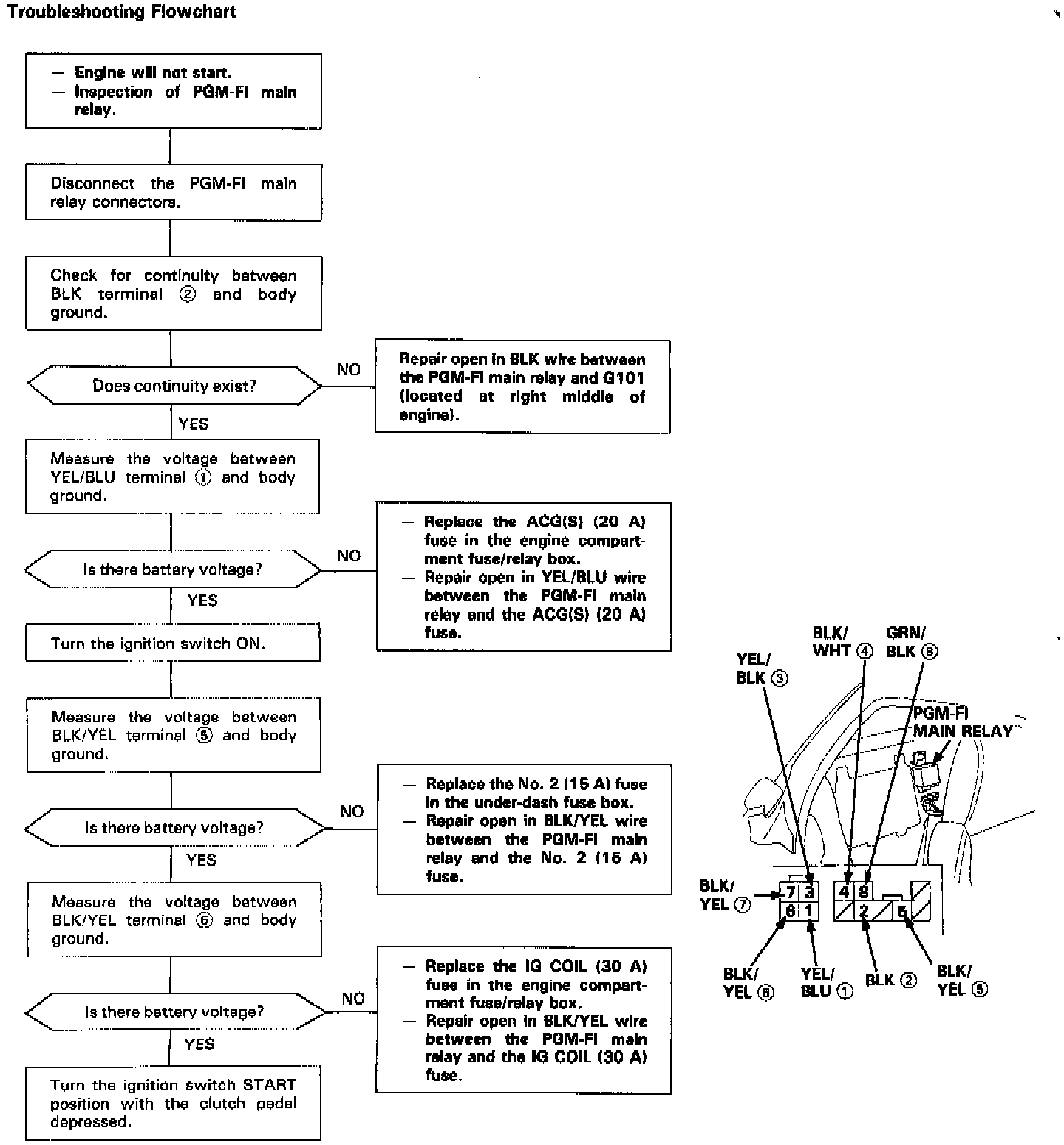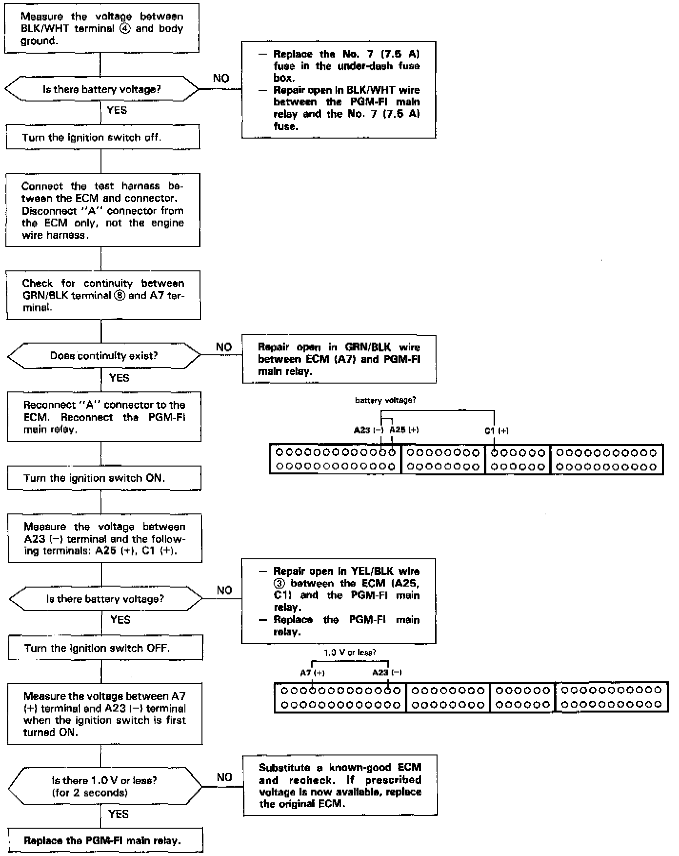 INSPECTIONNOTE: If the car starts and continues to run, the PGM-FI main relay is OK.