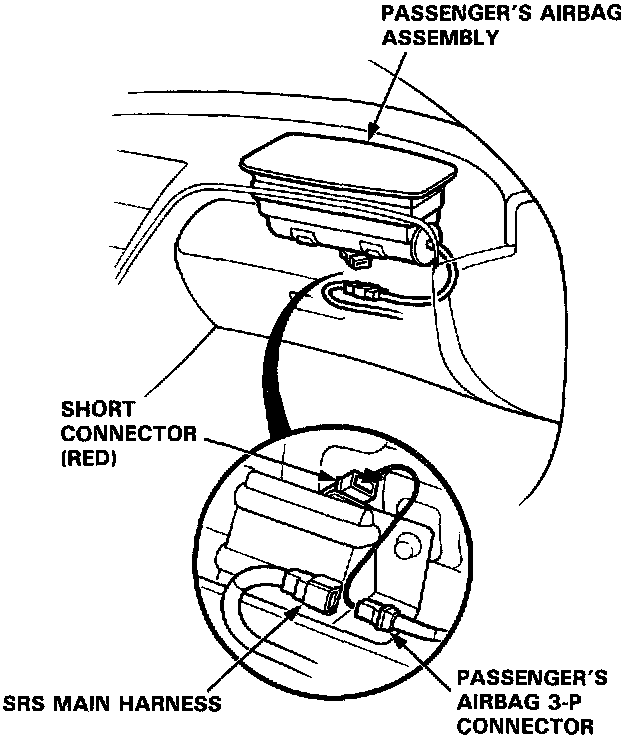 12. After completing repair work, be sure to remove the short connectors and reconnect all SRS connectors.