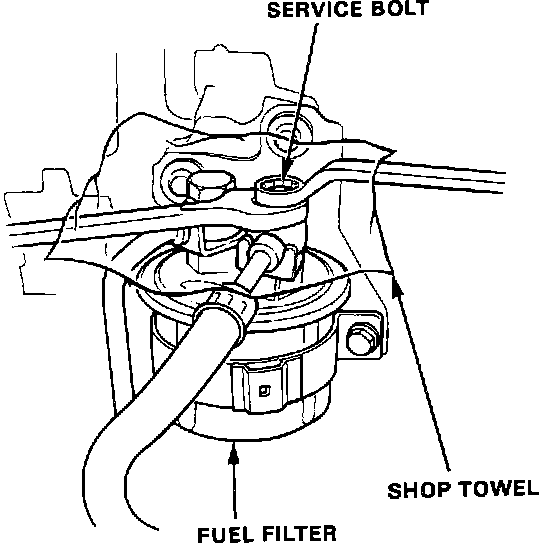 WARNING: DO NOT smoke while working on the fuel system. Keep open flame away from your work area. Make sure the engine is OFF before relieving fuel pressure.1. Place a shop towel under and around the Fuel Filter.