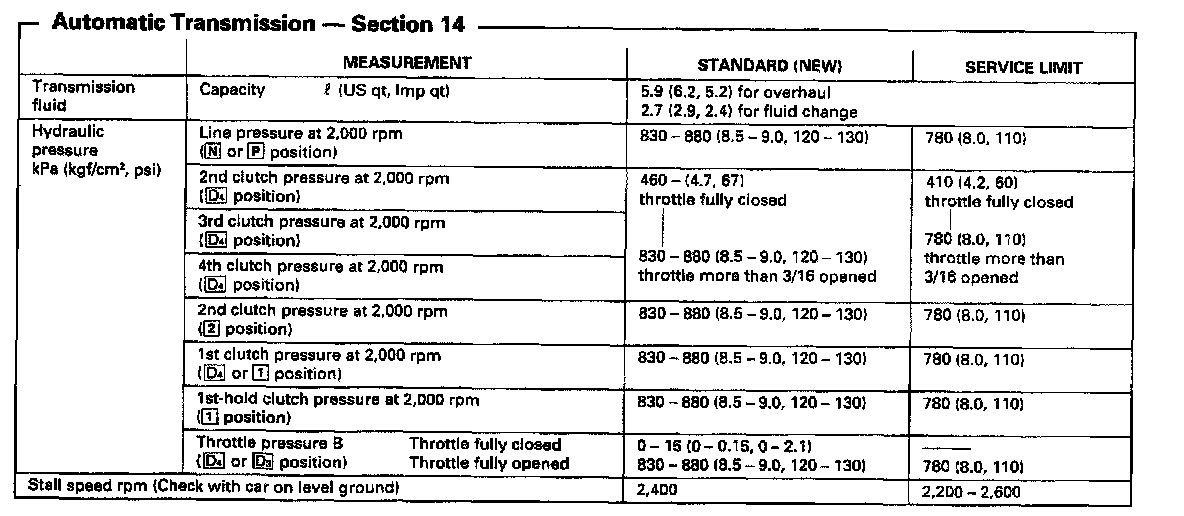 SP7A 4-spd A/T, Line Pressure, Stall Speed: