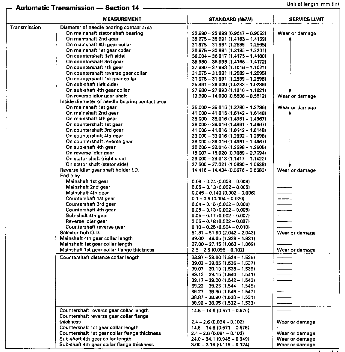 SP7A 4-spd A/T, Mainshaft/Countershaft, Oil Pump Clearances: