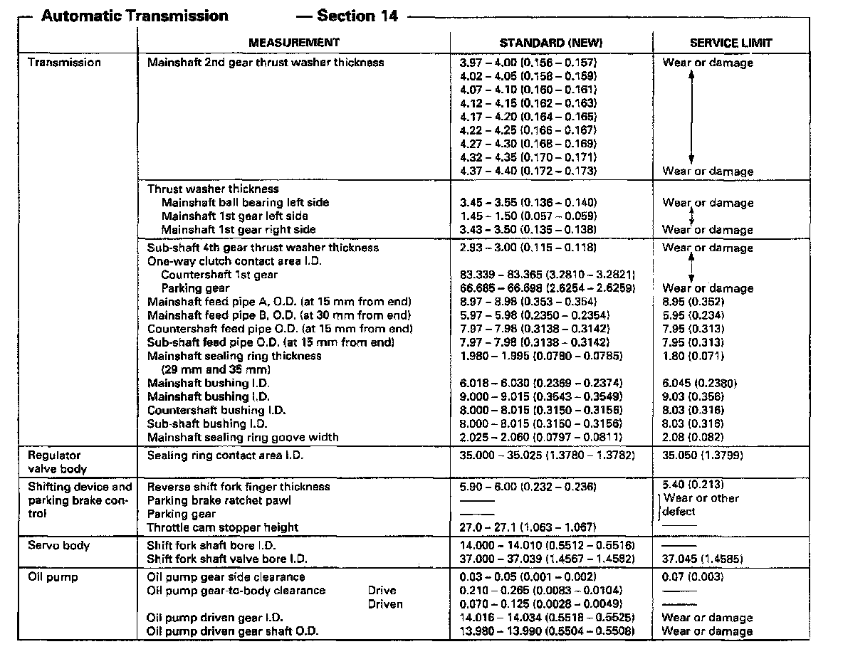 SP7A 4-spd A/T, Transmission Measurements: