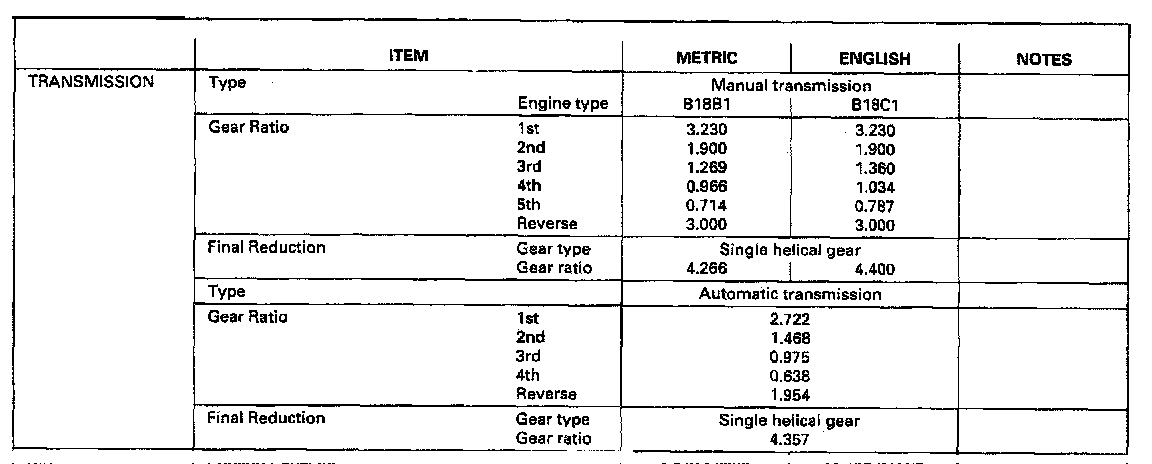 Manual/Automatic Transmission Gear Ratios: