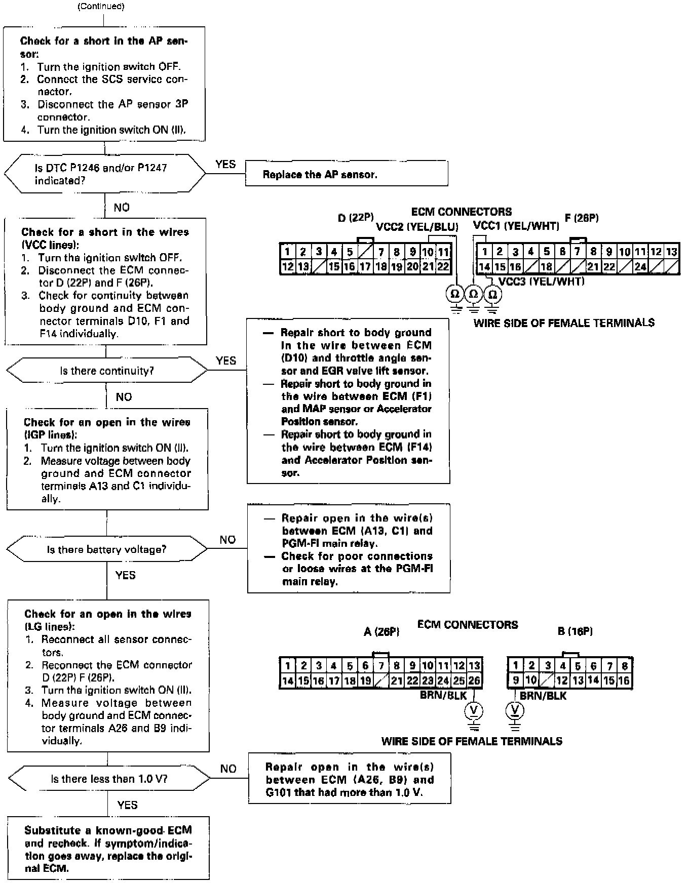 - An intermittent short in the wire between the ECM (F1) and the MAP sensor, accelerator position sensor