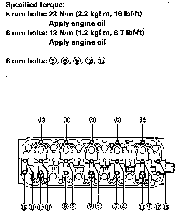 8 mm bolts: 22 Nm (16 ft. lbs.)