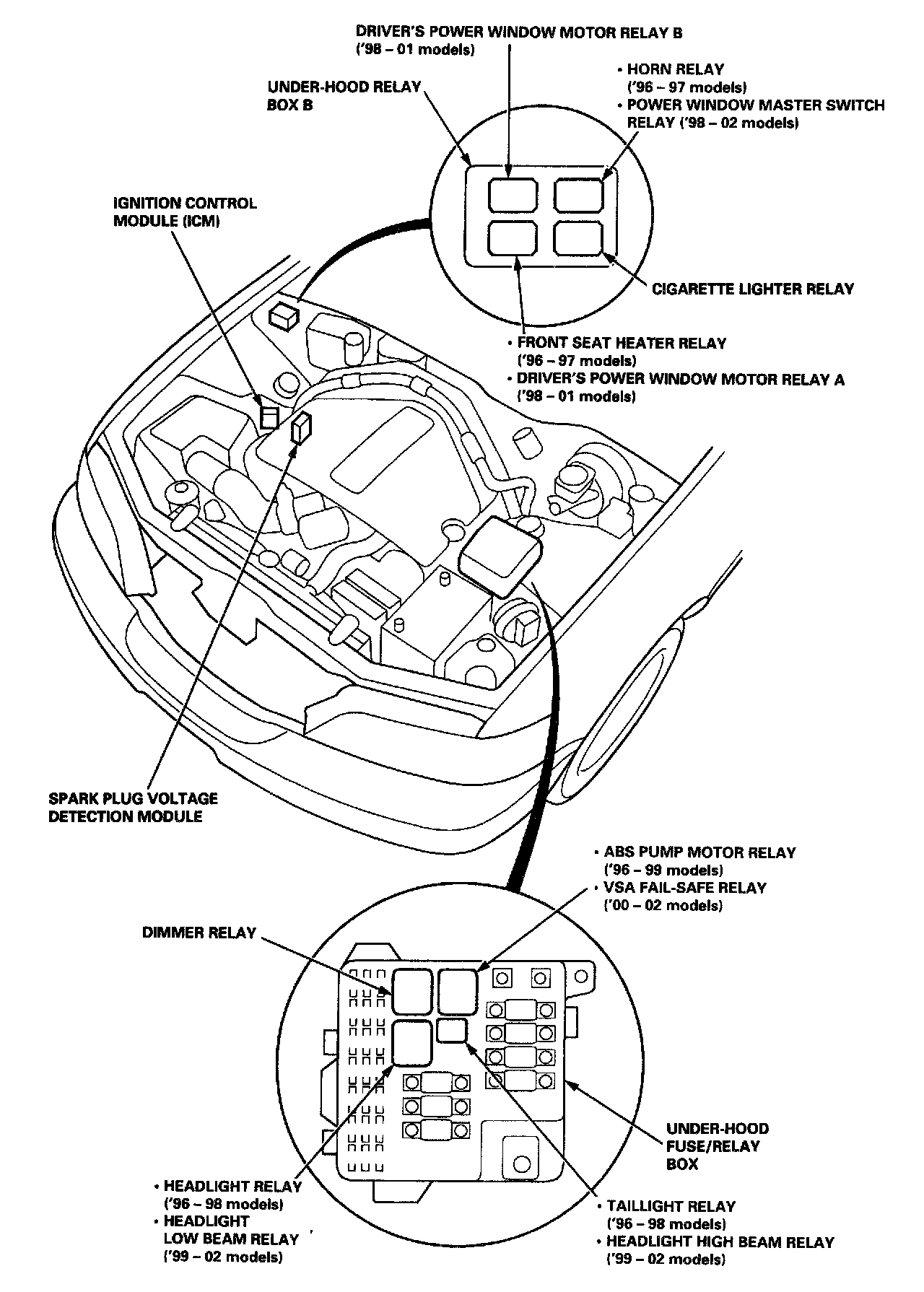 Relay And Control Unit Location - Engine Compartment: