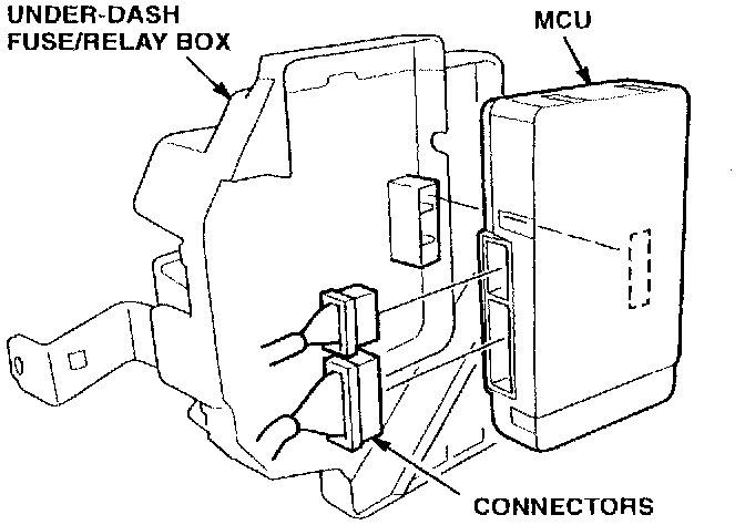 7. Remove the MCU from the back of the under-dash fuse/relay box. Disconnect the 16P and 26P connectors from the MCU.
