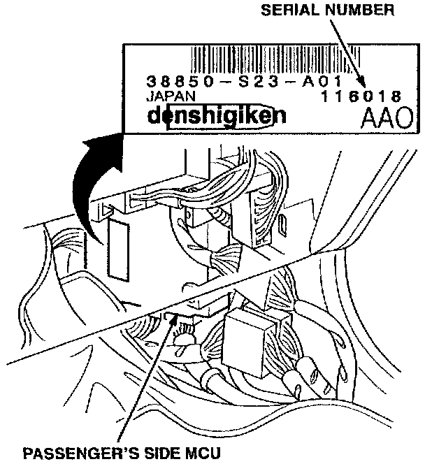 Replace the driver's side multiplex control unit (see PARTS INFORMATION). Locate the serial number on the passenger's side multiplex control unit, and replace the unit if it falls within the affected serial number range.Driver's Side MCU Replacement