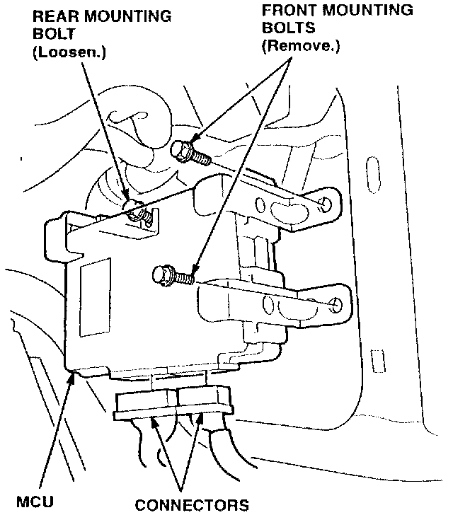 21. Remove the two MCU front mounting bolts, and loosen the rear mounting bolt. Remove the MCU.