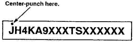 25. Center-punch a completion mark above the first character (J) of the engine compartment VIN.
