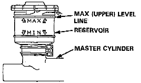 1. Make sure the brake fluid level in the reservoir is at the MAX (upper) level line.