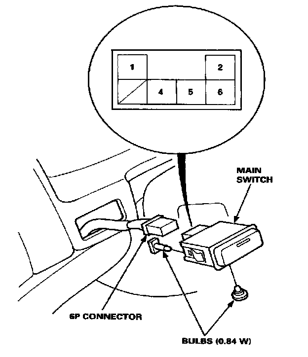 1. Carefully pry the switch out of the instrument panel.2. Disconnect the 6P Connector from the switch.