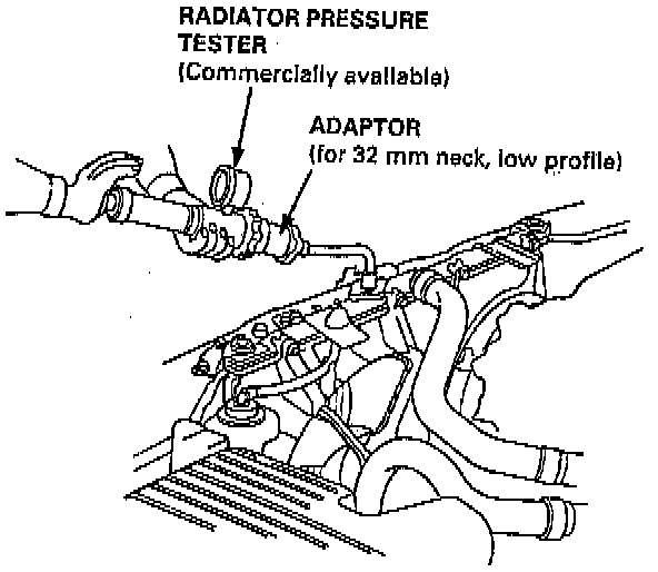 2. Attach the pressure tester to the radiator and apply a pressure of 93-123 kPa (14-18 psi).