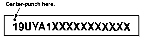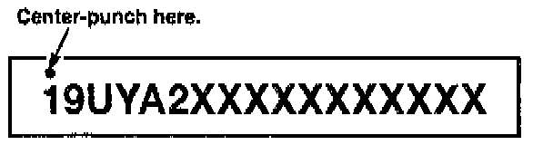 7. Center-punch a completion mark above the first character of the engine compartment VIN.