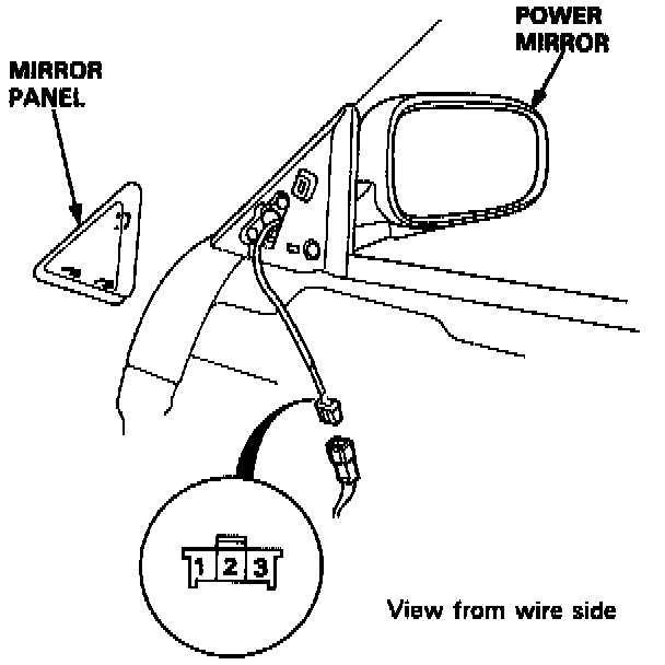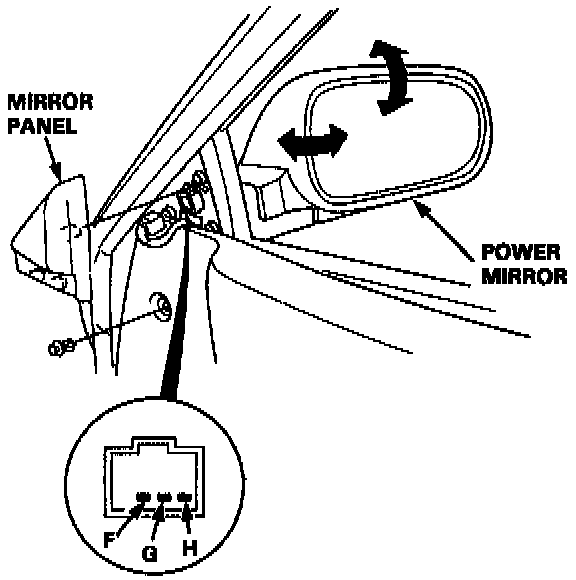 1. Remove the mirror panel and door panel (Sedan), then disconnect the 8-P (Hatchback) or 3-P (Sedan) connector from the power mirror actuator.