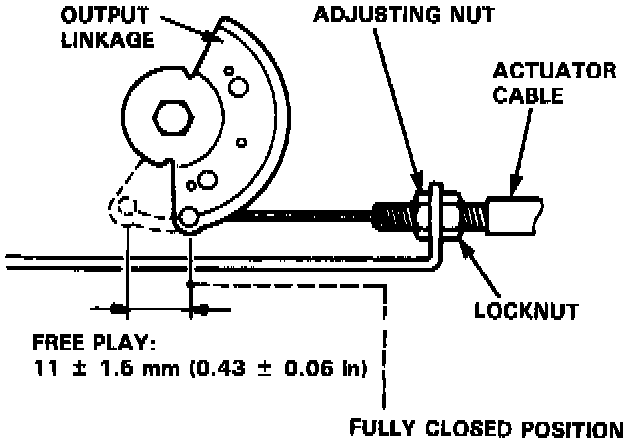 3. Measure how far the output linkage moves from the fully closed position. Free play should be 11 ± 1.5 mm (0.43 ± 0.06 in).