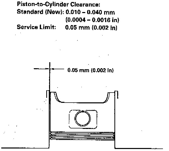 NOTE: If the clearance is near or exceeds the service limit, inspect the piston and cylinder block for excessive wear.