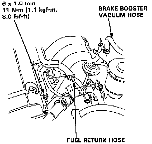 10. Remove the brake booster vacuum hose and fuel return hose.