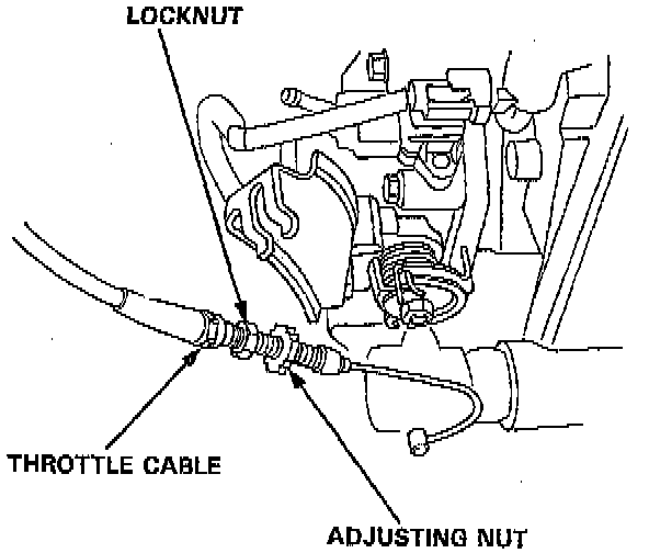 11. Remove the throttle cable by loosening the locknut, then slip the cable end out of the accelerator linkage.