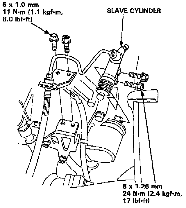 17. Remove the clutch slave cylinder and pipe/hose assembly.
