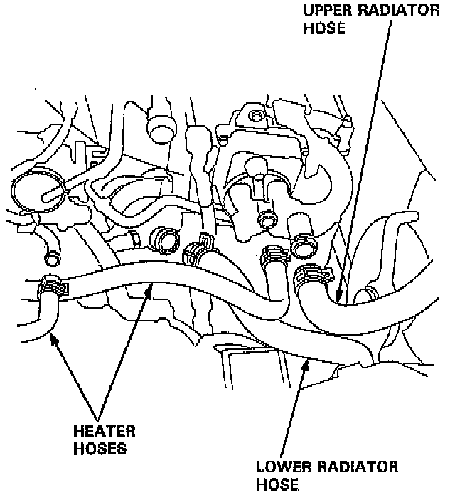 25. Remove the upper and lower radiator hoses and the heater hoses.