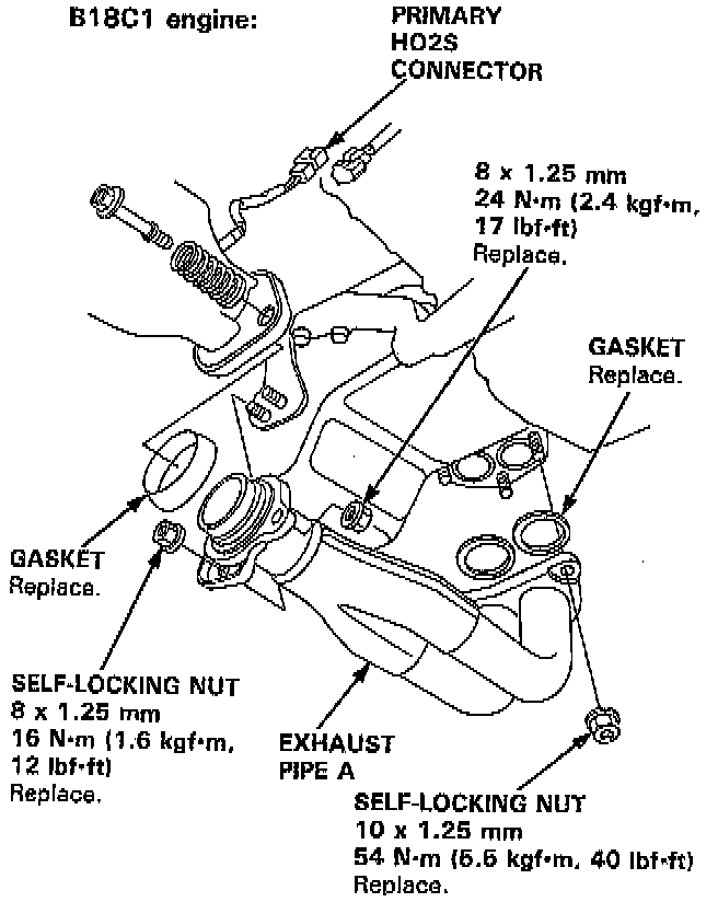 28. Disconnect the primary heated oxygen sensor (Primary HO2S) connector, then remove exhaust pipe A.