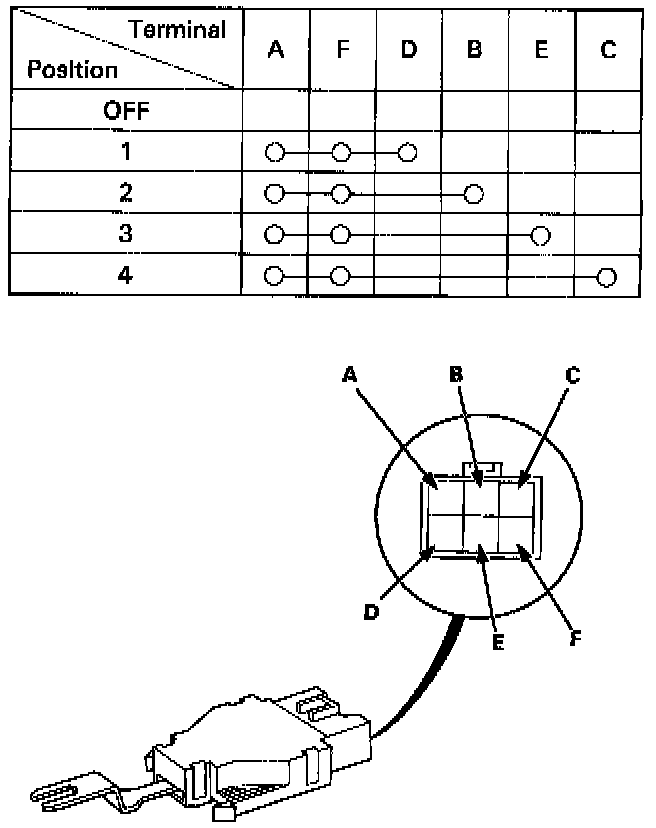 Check for continuity between the terminals according to the table.