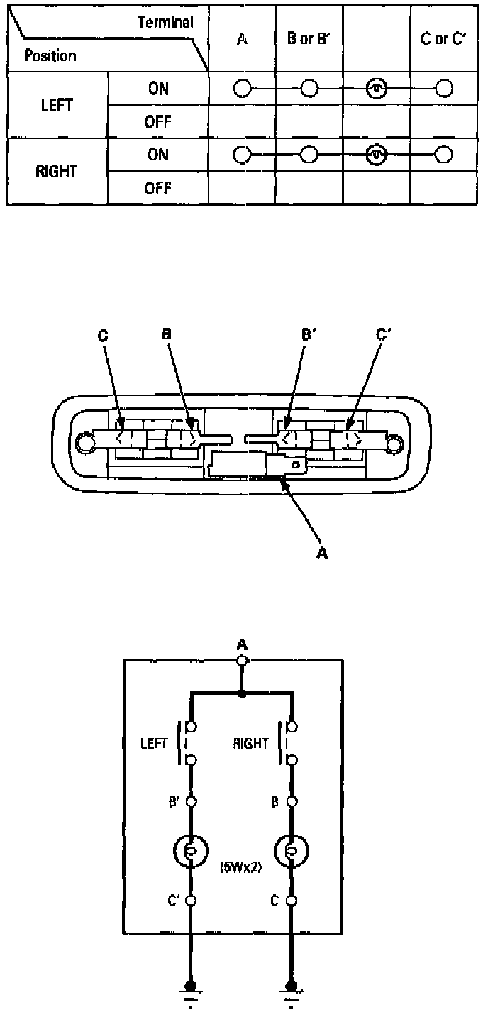 5. Check for continuity between the terminals in each switch position according to the table.