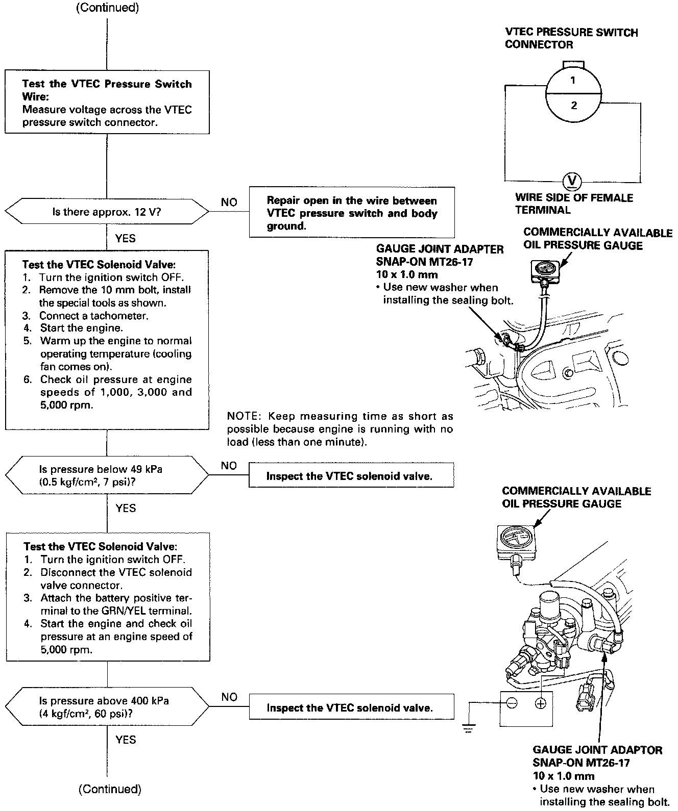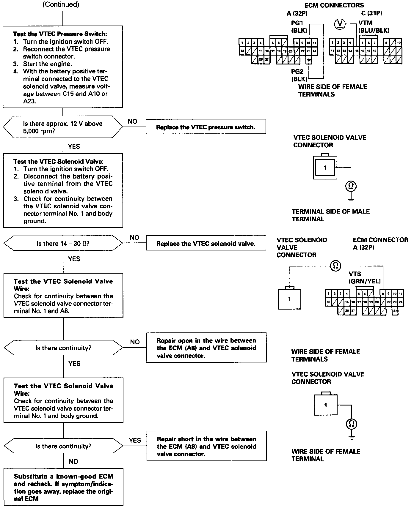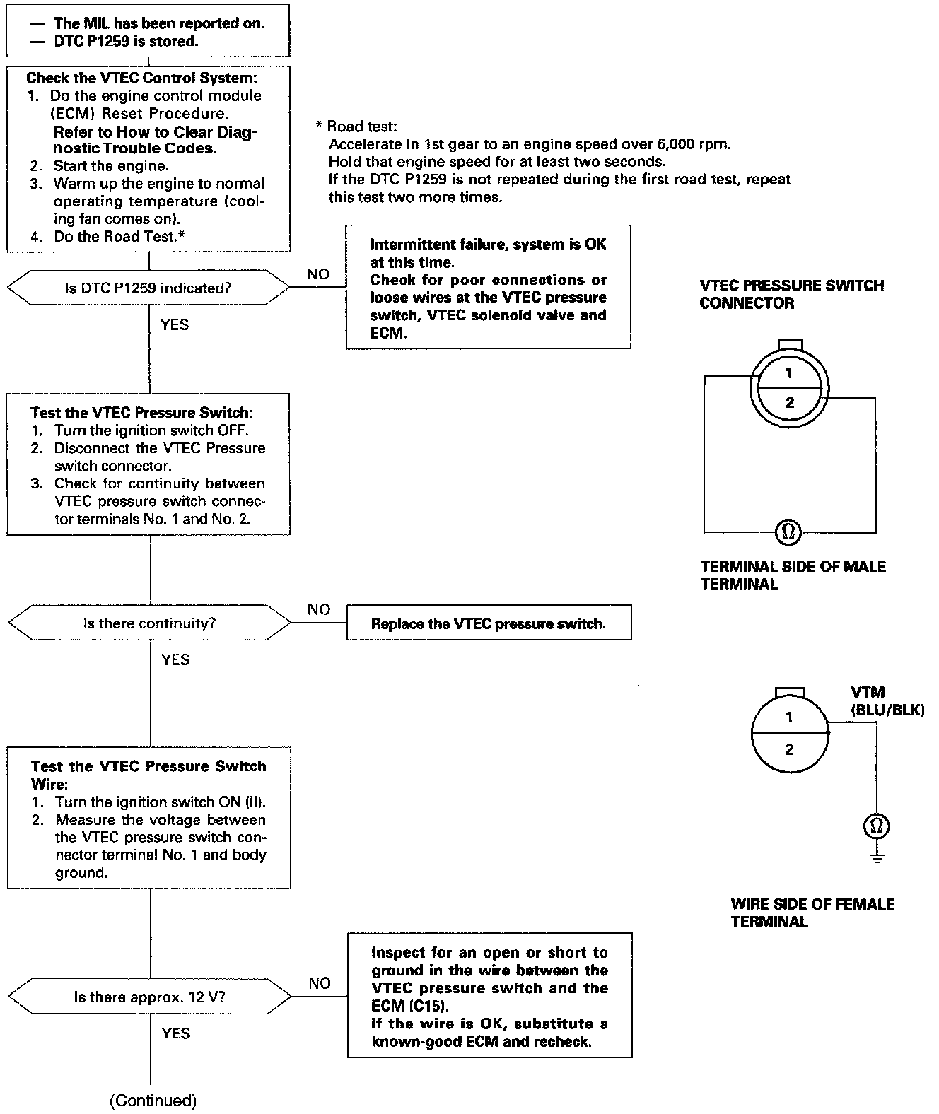 The scan tool indicates Diagnostic Trouble Code (DTC) P1259: A problem in the VTEC Pressure Switch circuit or VTEC Solenoid Valve circuit.