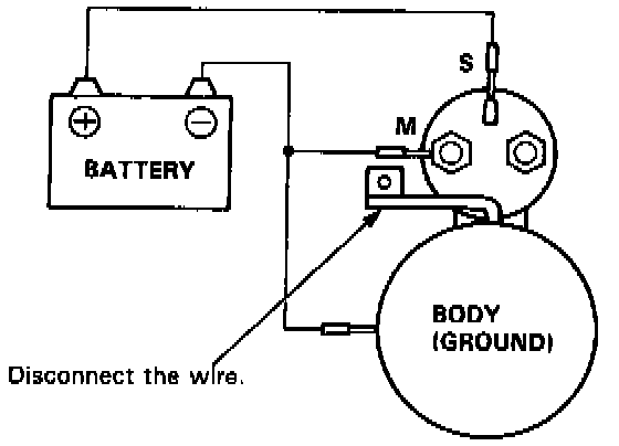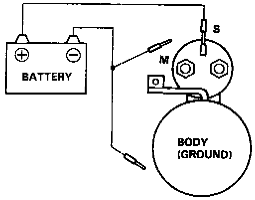NOTE: Before starting the following checks, disconnect the wire from terminal M, and make a connection as described below using as heavy a wire as possible (preferably equivalent to the wire used for the car).