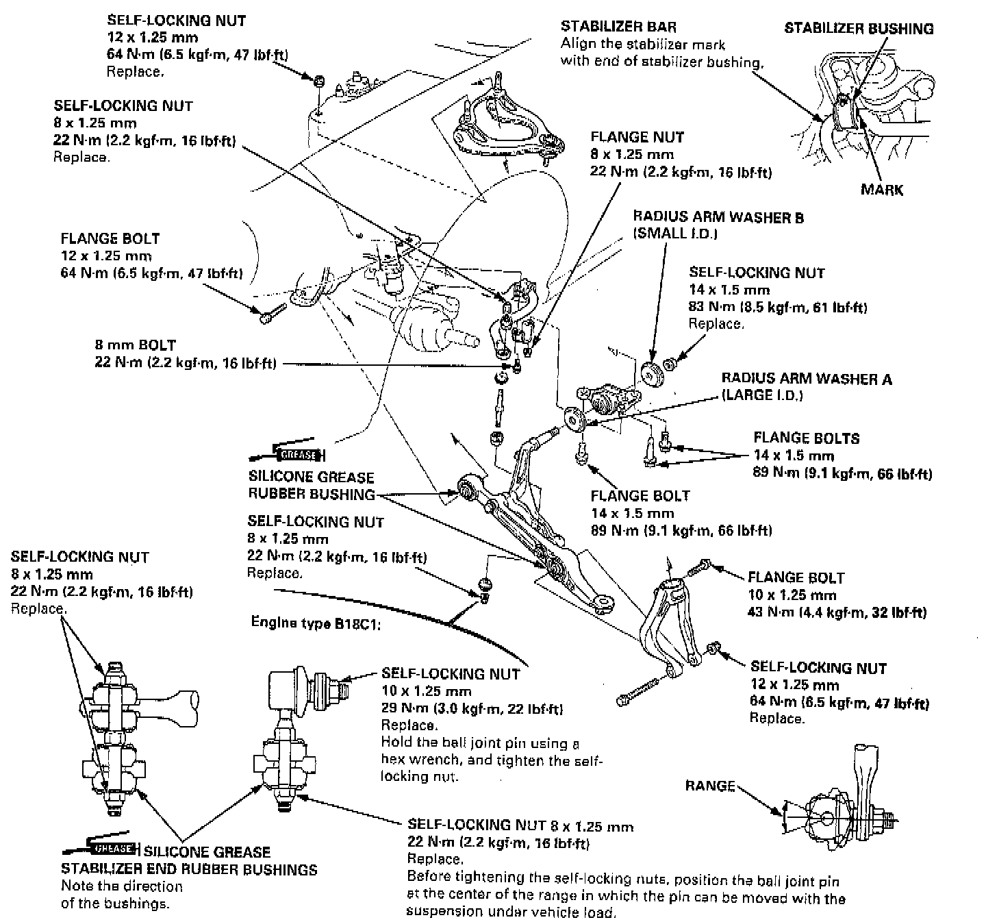 - When installing the radius arm washers, the "FR" mark faces the front of the car.