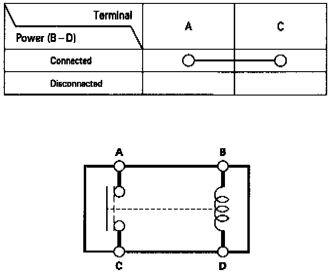 - There should be continuity between the A and C terminals when power and ground are connected to the B and D terminals.