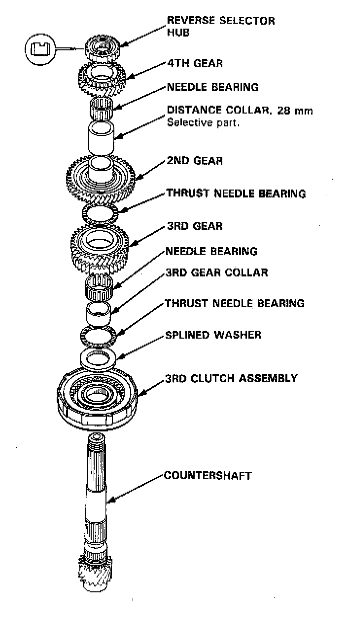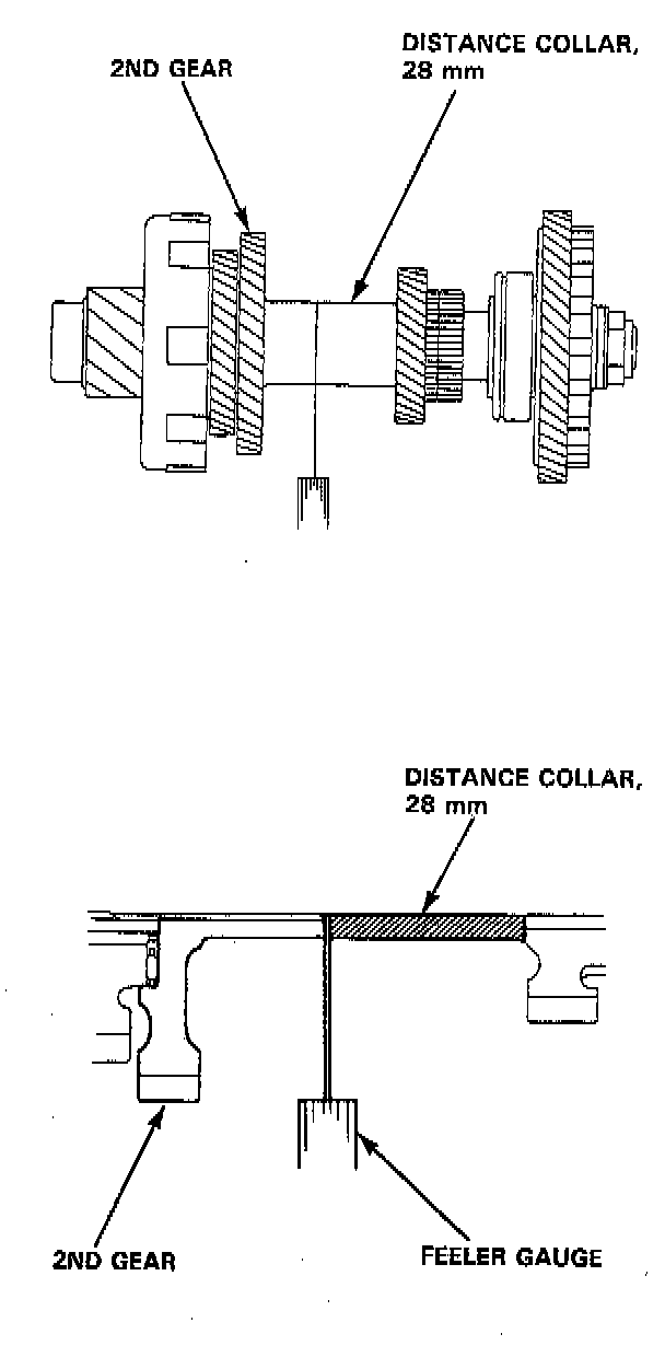 4. Measure the clearance between the 2nd gear and the 28 mm distance collar with a feeler gauge.