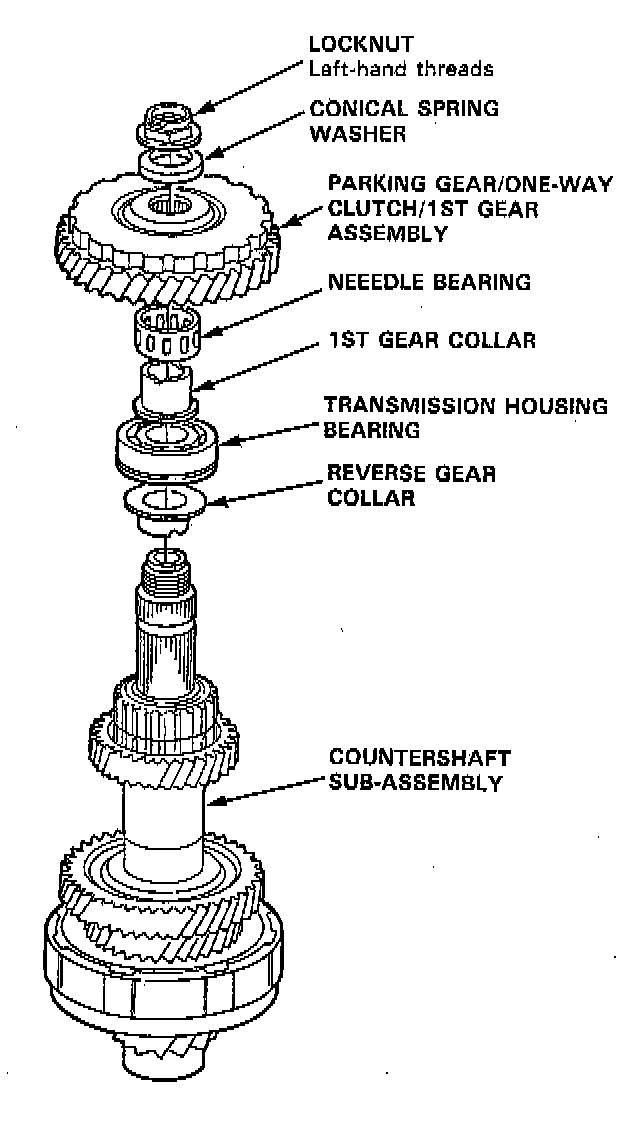 3. Install the parts on the countershaft subassembly, then torque the locknut to 29 Nm (22 ft. lbs.).