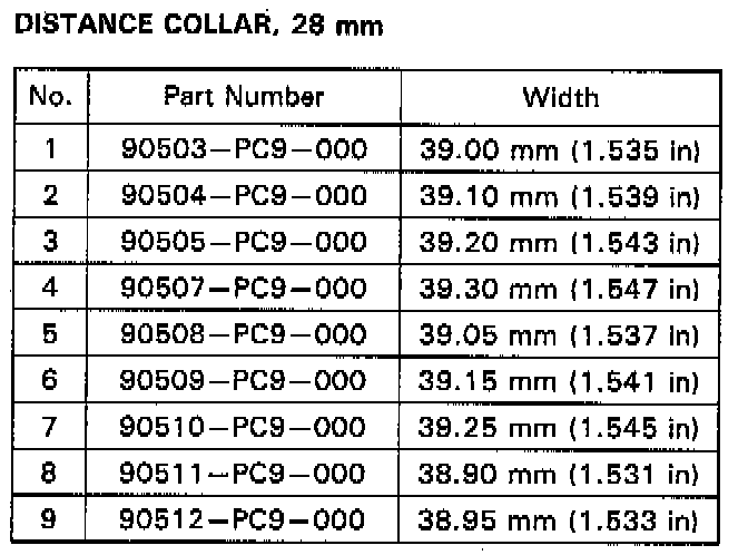 5. If the clearance is out of tolerance, remove the 28 mm distance collar and measure the width.