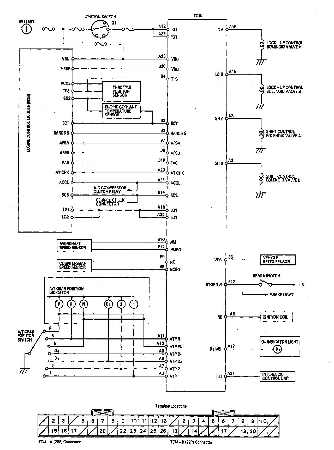 How it works: The TCM compares actual driving conditions with driving conditions memorized in the TCM, based on the input from the vehicle speed sensor, throttle position sensor, engine coolant temperature sensor, barometric pressure sensor, brake switch signal and shift lever position signal, to control shifting while a vehicle is ascending or descending a slope, or reducing speed.