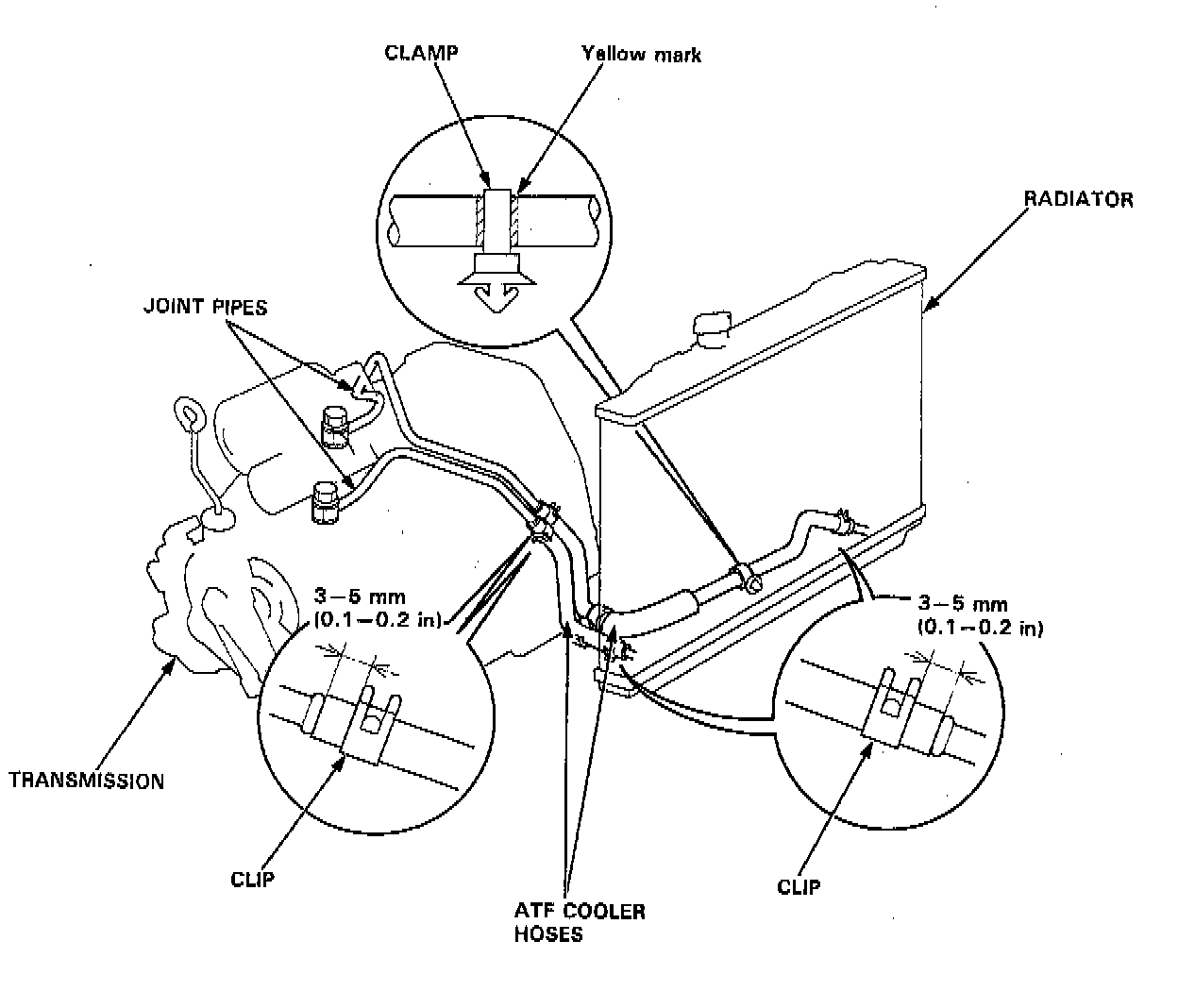 Clamp the ATF cooler hose at the yellow mark as shown.