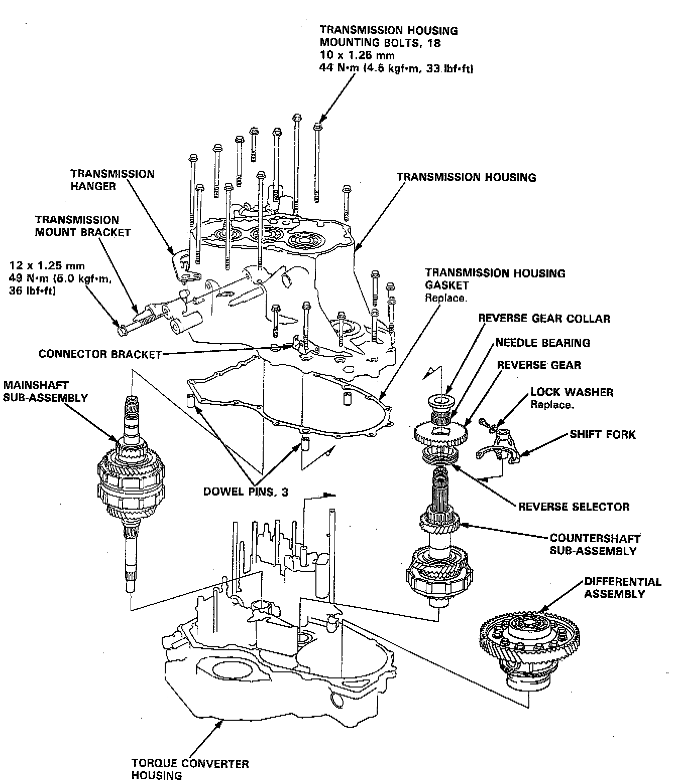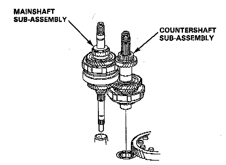 21. Assemble the mainshaft and countershaft subassembly, then install them together in the torque converter housing.
