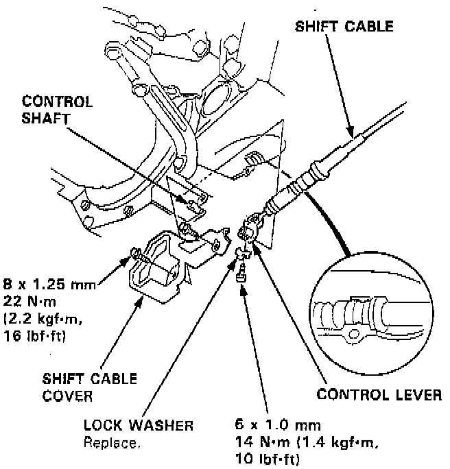 13. Install the control lever with a new lock washer to the control shaft, then install the shift cable cover.