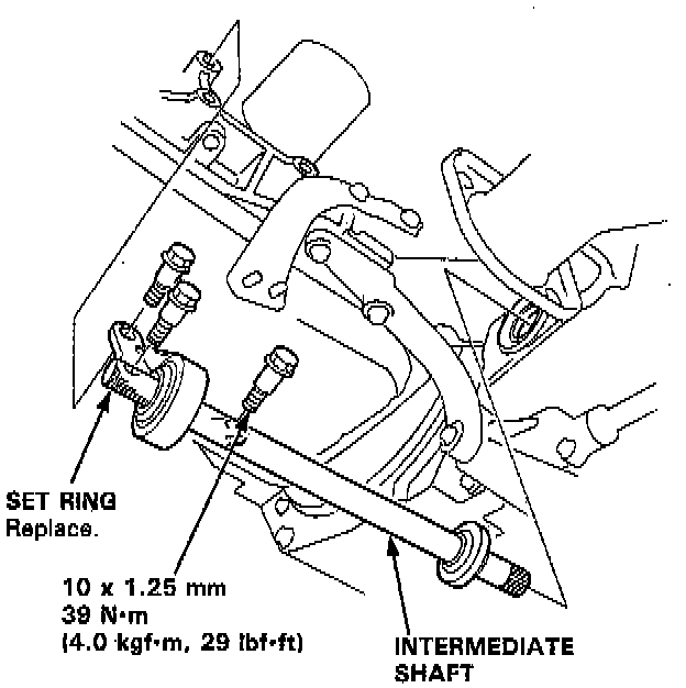 14. Install new set rings on the end of the intermediate shaft and the driveshaft.